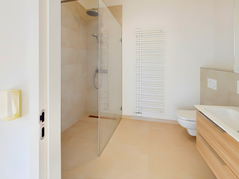 Besonderes Augenmerk wurde auf die zeitlose Qualität gelegt: Edles Eichenparkett zieht sich durch alle Wohnbereiche, ergänzt durch eine behagliche Fußbodenheizung. Die geschmackvolle und moderne Badausstattung unterstreicht den durchgängig gehobenen Charakter dieser Immobilie. Die zeitgemäße, klare Formsprache der Neubaus-Architektur garantiert dabei nicht nur Ästhetik, sonder auch Nachhaltigkeit sowie Werthaltigkeit.