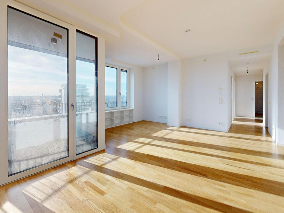Diese exklusive Eigentumswohnung im 14. Obergeschoss eines hochmodernen Architektur-Highlights ist mehr als nur ein Zuhause - es ist ein urbanes Refugium mit spektakulärer Aussicht. Überzeugend sind ferner die herausragende Ausstattung, großzügige Raumaufteilung und eine unvergleichliche Lage. Auf ca. 107 m² Wohnfläche eröffnet sich Ihnen ein Grundriss, der durch Großzügigkeit und Licht definiert wird.