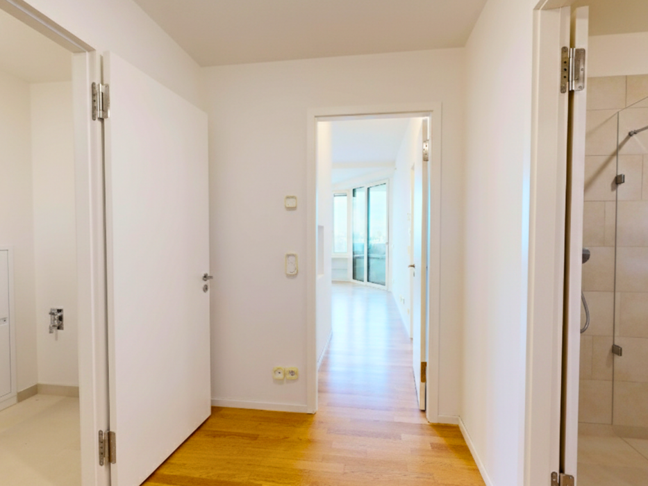 Besonderes Augenmerk wurde auf die zeitlose Qualität gelegt: Edles Eichenparkett zieht sich durch alle Wohnbereiche, ergänzt durch eine behagliche Fußbodenheizung. Die geschmackvolle und moderne Badausstattung unterstreicht den durchgängig gehobenen Charakter dieser Immobilie. Die zeitgemäße, klare Formsprache der Neubaus-Architektur garantiert dabei nicht nur Ästhetik, sonder auch Nachhaltigkeit sowie Werthaltigkeit.