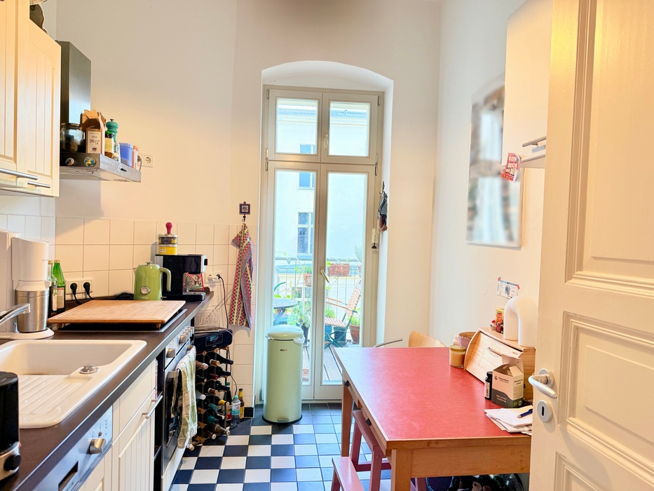 Der Balkon, der zum ruhigen Innenhof ausgerichtet ist, bietet einen wertvollen Freiraum und unterstreicht die Wohnqualität.
